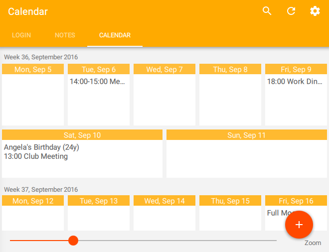 But I think the best thing about Lexiy calendar for me is the zoom view. it's something I've not seen anywhere else. You can seemlessly zoom from a, bird's eye, multi-month view, right down to a single day. In between are several week view variations depending on the scale, such as the "5+2" view, where the week is shown as 5 days (Mon-Fri) with the 2 day weekend below.